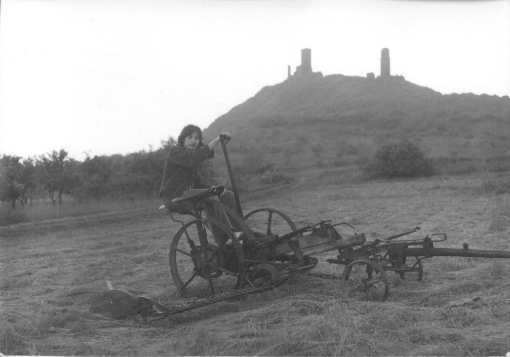 Veverka often perceived his designing ideas by intuition and as immediately as to be only able to draw them in. Pictured in May 1982, a moment of cognition that Veverka´s mind came to understand at last what ever his hands drew in. Here pictured with his machine of genius,a multi-purpose thrasher, Veverka didn´t have his patent registered in due course (writer´s note: Neither did his ancestors the Veverka Cousins.). The idea was stolen by the then East German company Fortschritt (writer´s note: Like the idea of swing-plough was stolen from his ancestors by a German landlord. History repeats itself.)
