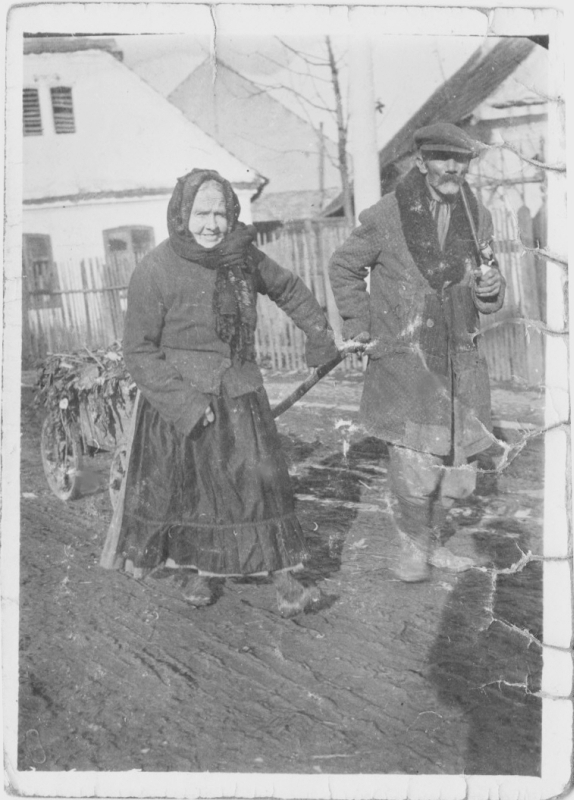 | K této fotografii se nám žádné bližší podrobnosti dohledat nepodařilo, z kontextu je ale zřejmé, že se jedná o rodinnou siestu některého z potomků bratrance Václava Veverky s jeho ženou, zachycenou na jednu z prvních fotografií vůbec. Paní je něco kolem osmadvaceti a jarý děd, spoluvlekoucí čtyřkolák, je čerstvý pětatřicátník. (cca 1890) |