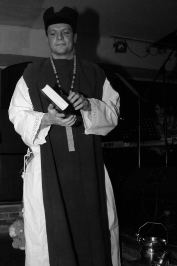 kráčel a slova svatého Hnědého spasitedlně řinula se mu z úst...